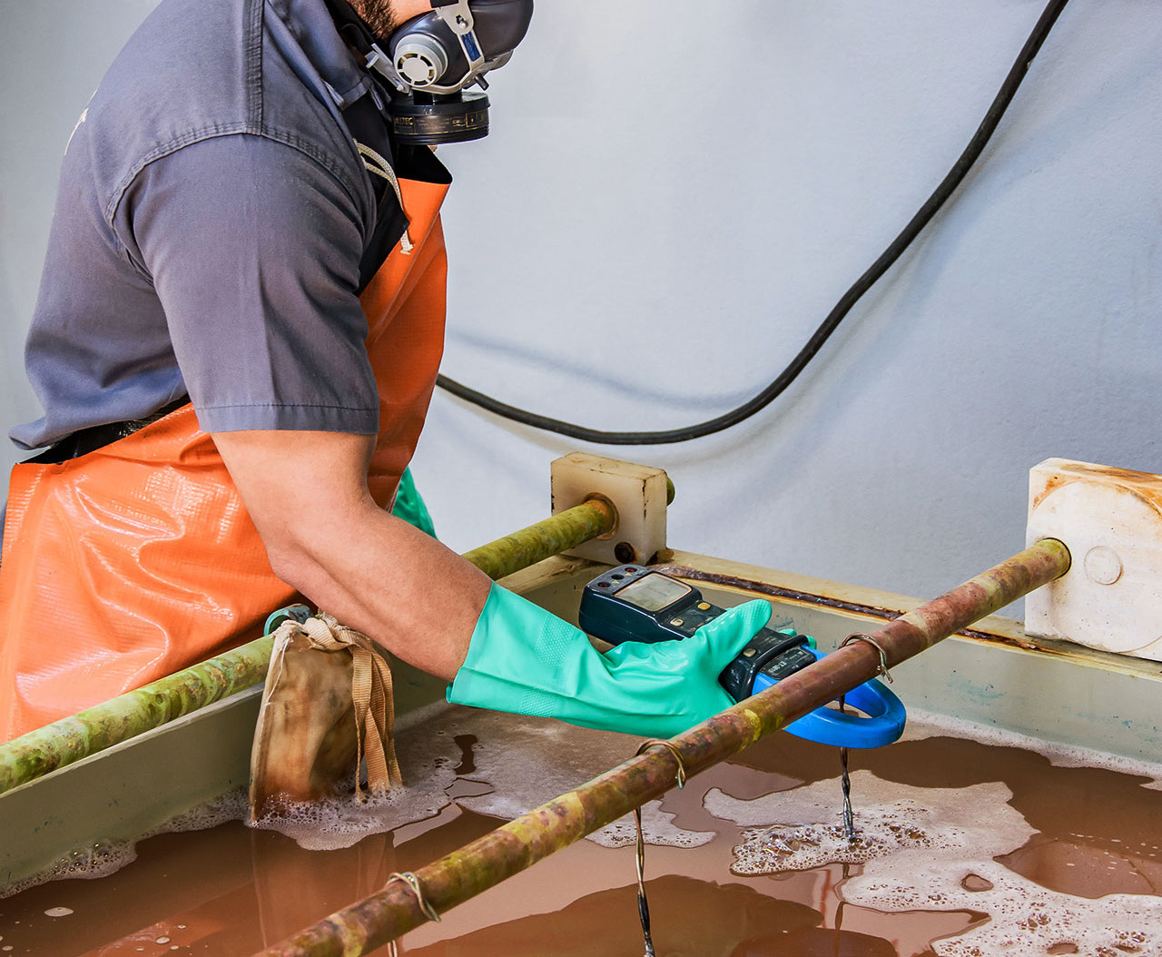 A corrente elétrica é uma das principais matérias-primas do processo eletrolítico. Porém, antes de entrar no processo ela é convertida de corrente alternada (redes de distribuição de energia elétrica) para corrente contínua, com o uso de retificadores. Com a transformação em corrente contínua é possível separar a parte positiva e negativa da corrente.